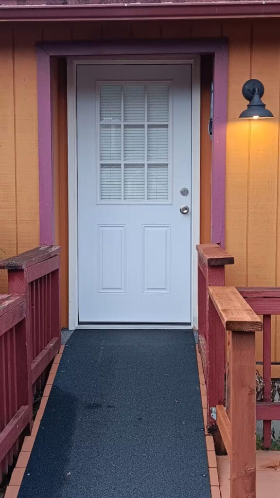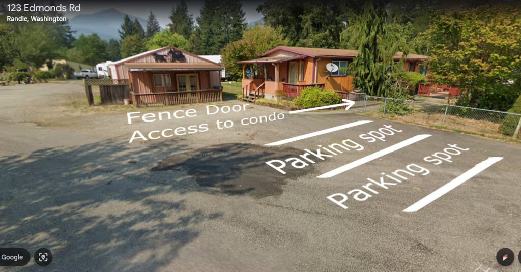 The cottage is accessed on the left side of the building. The right side of the building is used by a small and quiet business on weekdays.